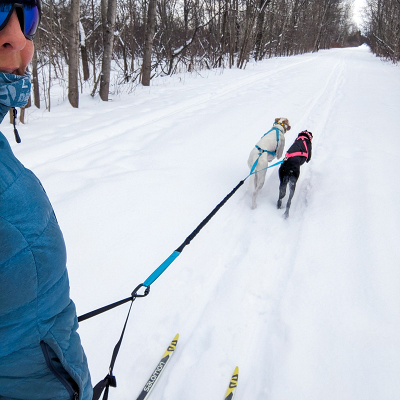 Polyvalente, on l’utilise aussi bien en bikejoring qu’en skijoring que lors de longues randonnées actives. Sa longueur assure une distance sécuritaire entre vous et vos chiens, tandis que la poignée intégrée à mi parcours permet un contrôle rapide et précis lorsque la situation l’exige.